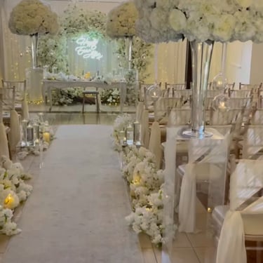 From statement floral installations to refined table settings and complete venue dressing, we design wedding spaces that feel cohesive, polished, and unforgettable.