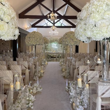 At Shelly’s Inspired Events, we specialise in transforming venues into beautifully designed spaces that reflect your vision and elevate every moment of your day. From elegant aisle styling and statement floral installations to refined table settings and bespoke backdrops, every detail is considered, designed, and executed to the highest standard.